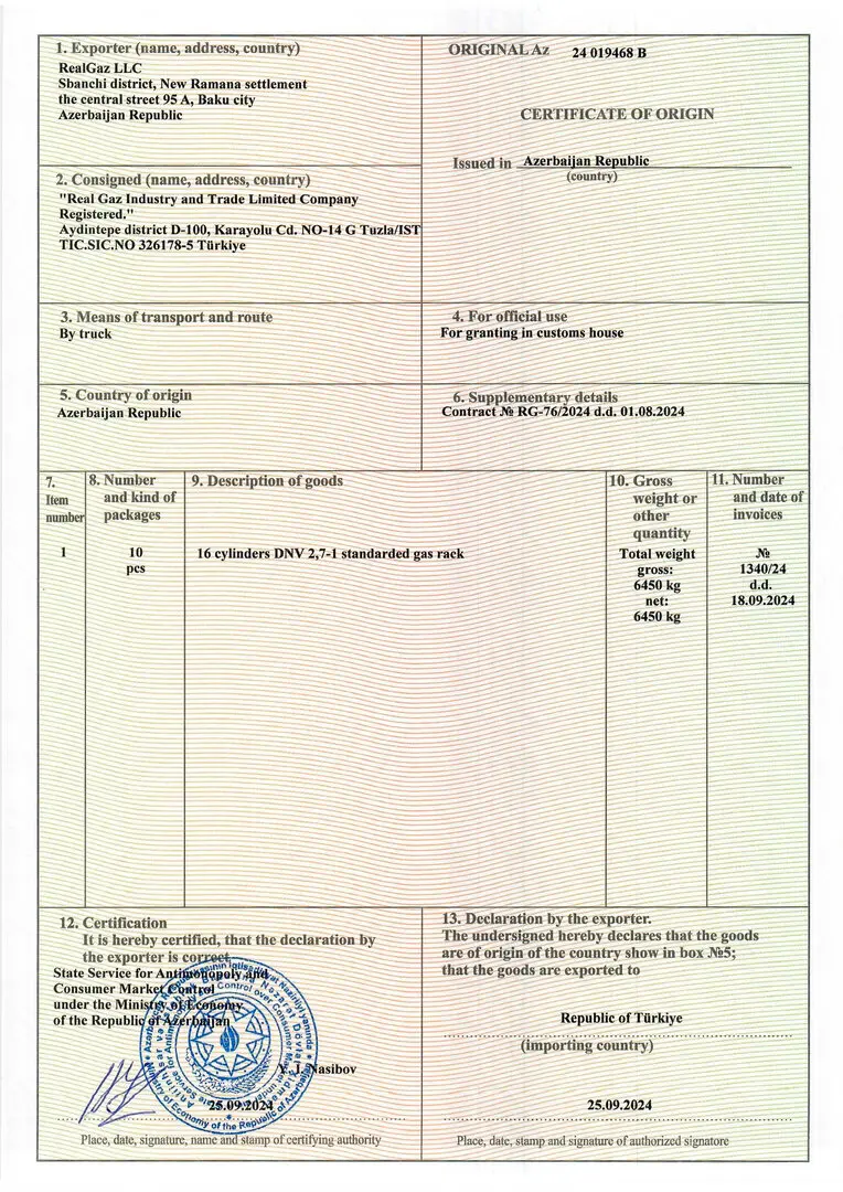 - DNV sertifikatlı qaz rackları: İstənilən sayda, manifoldlu və ya manifoldsuz, DNV GL 2.7-1 standartlarına uyğun rack-ların istehsalı